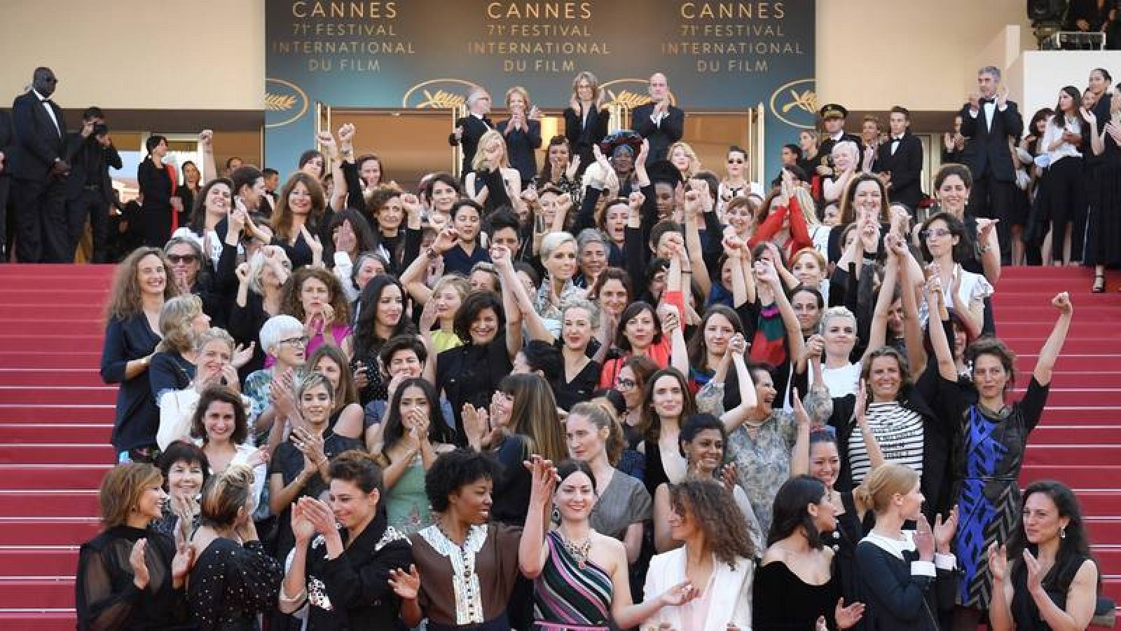 Las mujeres han llegado en grupos, del brazo y de espaldas a los fotógrafos hasta que se han reunido todas en la alfombra. El lunes, está previsto que el delegado general del festival, Thierry Frémaux, y los responsables de la Quincena de Realizadores, firmen la Carta por la Paridad y la Diversidad en los Festivales de cine.